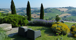 Besonders angetan waren wir von dem Panoramafenster im Wohnbereich, durch welches man einen weiten Blick über die bezaubernde Hügellandschaft der Marken hat.