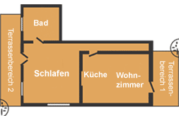 Die Wohnung SUNDOWN für 2-4 Personen inkl. zweier Terrassen